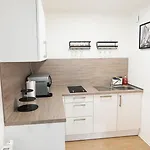 An equipped kitchenette with an electric kettle, a refrigerator, and kitchenware is available as part of the apartment's self-catering amenities. Breslauer Strasse bus stop is a 5-minute stroll away. A terrace faces the garden.